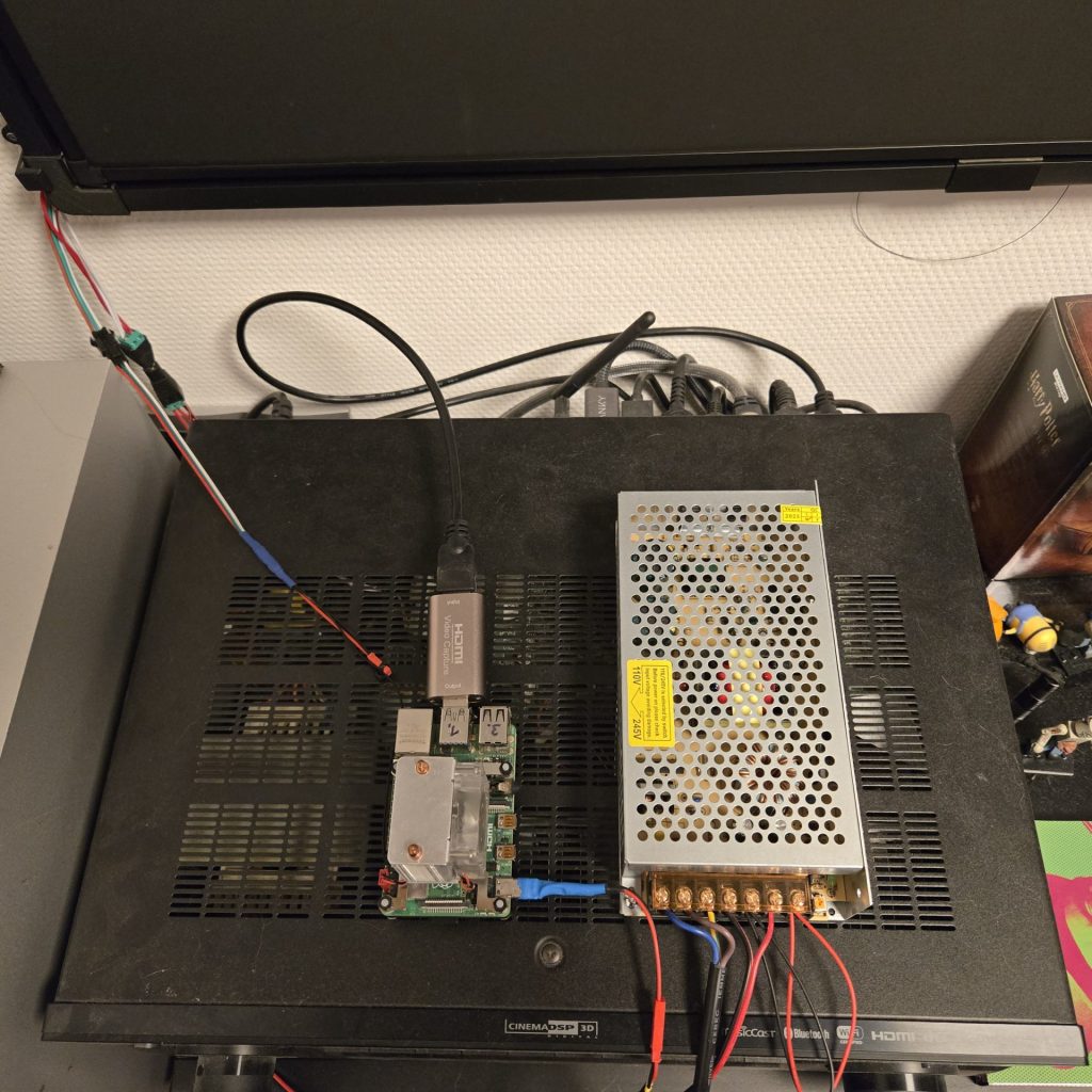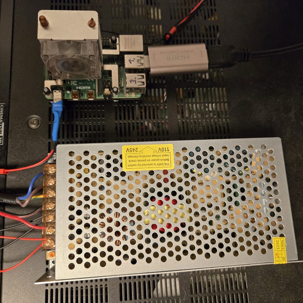 Zu der von mir verwendeten Steuerelektronik kann man sagen, dass ich am Ende mit einem Raspberry Pi 4, einem ganz einfachen HDMI zu USB Konverter, einem 5 Volt, 30 Ampere Netzteil und einigen Kabeln, ausgekommen bin. Es waren nicht wirklich irgendwelche Logiklevelschifter oder zusätzliche ESP Bausätze notwendig, um die LED‘s optimal zu betreiben.
