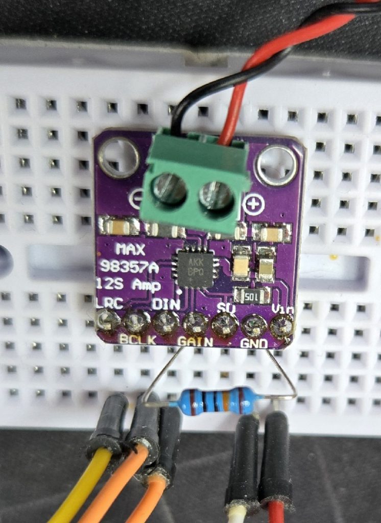 # MAX98357A Gain -> 300 Ohm to GND for 12dB (open 9 dB)