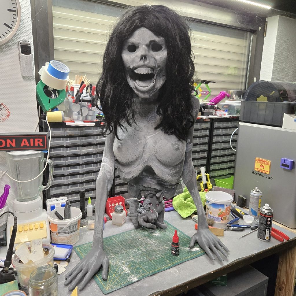 Specs: about 8 KG grey PLA+, 8 Bottles of spray Paint, Filler and mate Gloss, several water based Colors from the Dollar Store, a Wig, some Jewlery from my Wife and of course 500ml fake Blood 🙂